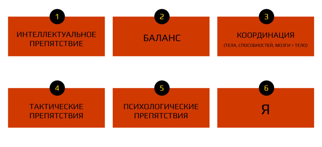 - Препятствие в виде координации движения. Это и координация вашего тела, и координация ваших способностей, и координация взаимодействия ваших мозгов и вашего тела.