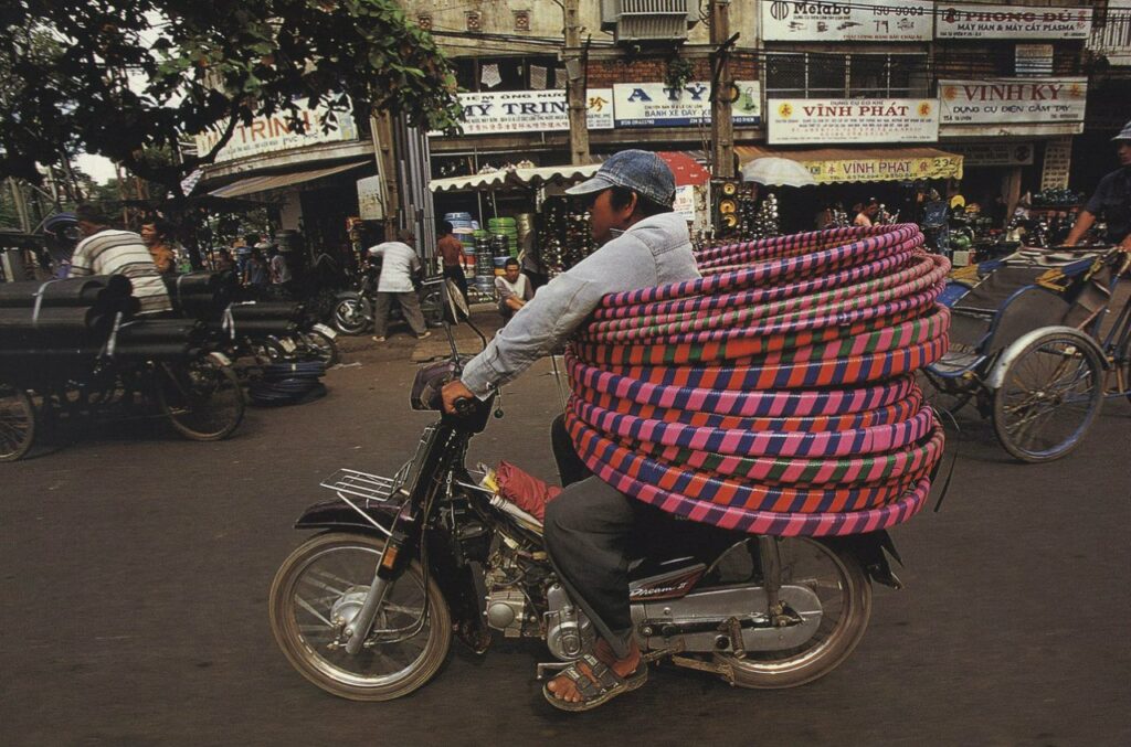 У вьетнамцев очень сильная позиция «все можно сделать». Как говорится, в основном это вызвано необходимостью, матерью всех изобретений. Когда я начинал снимать эту серию, мотоциклы были предпочтительным видом транспорта. Автомобили были в основном не по карману, а мотоциклы могли с относительной легкостью маневрировать по перегруженным улицам и маленьким переулкам. Так что местные водители справлялись, потому что должны были справляться.