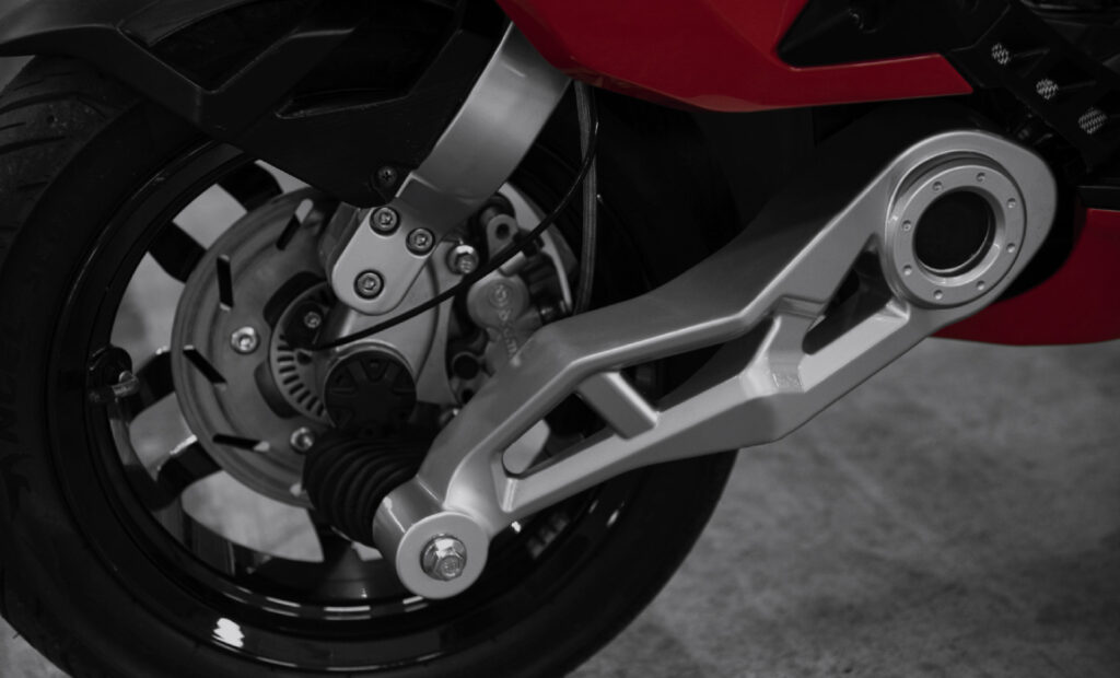 распределительных вала с цепным приводом, четыре клапана на цилиндр, чашечные толкатели, центробежное сцепление, вариатор.