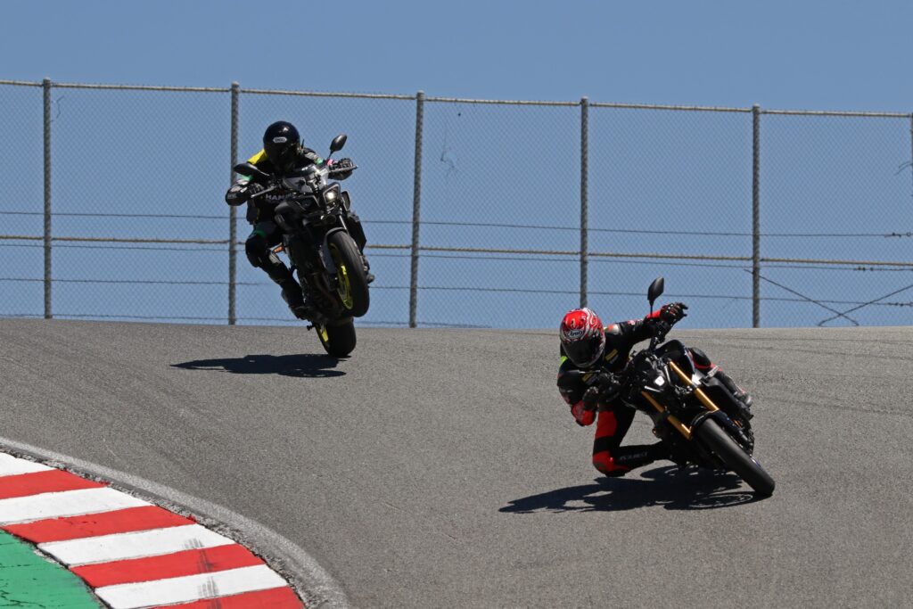 Второе, что является очень важным в нашей программе обучения — это понимание соотношения радиуса поворота и скорости его прохождения. Обычно, проходя поворот, люди закручивают дроссельную заслонку и ожидают, что двигатель их затормозит. Но так не происходит. Поэтому мы обучаем «трэйл брэйкингу», когда практически одновременно задействован и тормоз, и газ. Что происходит: человек закручивает газ и на всякий случай тормозит. Каким тормозом тормозить выбирать Вам, но мы используем передний тормоз в таких ситуациях по трем причинам: